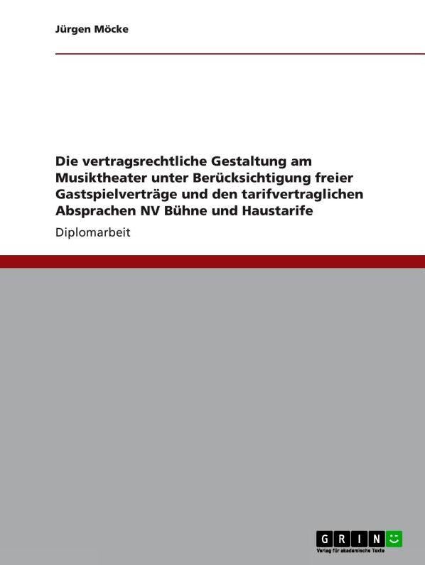 Die Publikation "Die vertragsrechtliche Gestaltung am Musiktheater ..." ist im GRIN-Verlag erschienen. Sie ist auch über folgenden Link erhältlich: http://www.amazon.de. Sie haben hier die Möglichkeit einer kurzen Leseprobe.